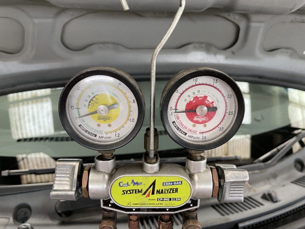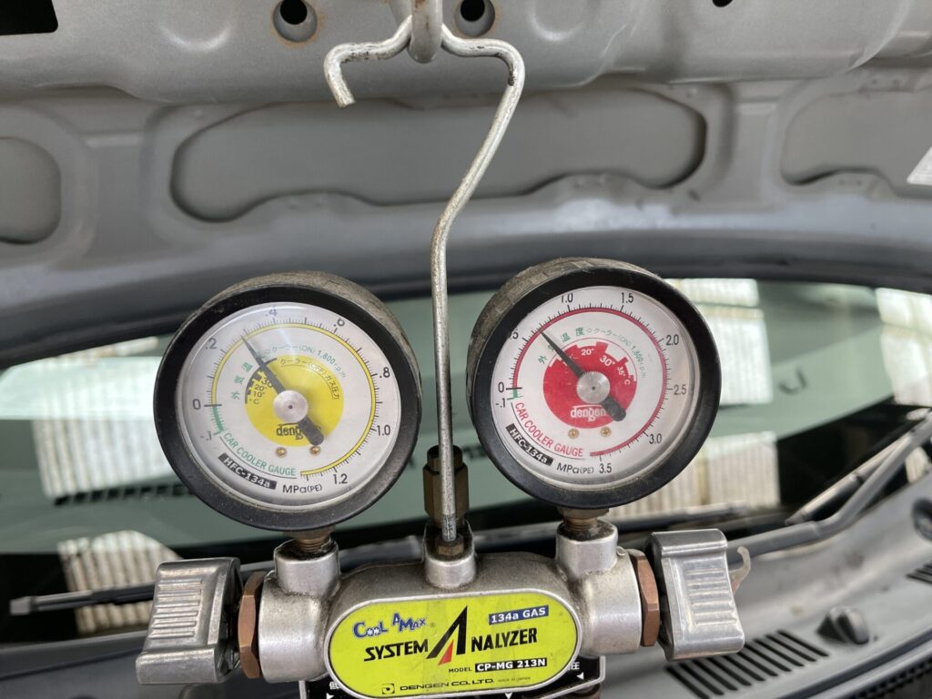 エアコンガスを入れ、エアコンの効きを確認し、